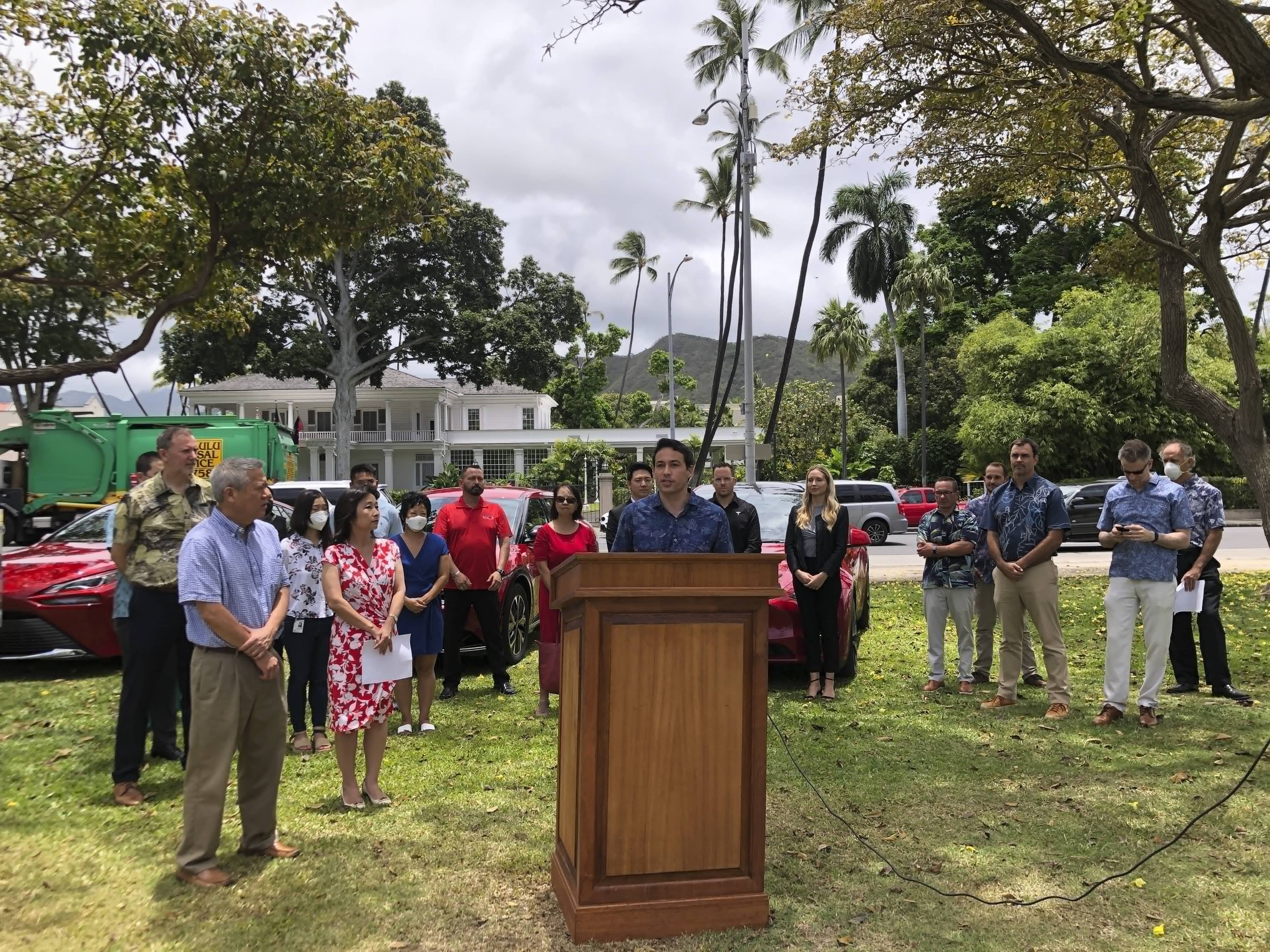 Sen. Chris Lee said at a news conference on Thursday that Hawaii has some of the highest transportation costs in the nation because of its dependence on imported fossil fuels. Shifting to cleaner energy sources could help lower those costs, he said.
