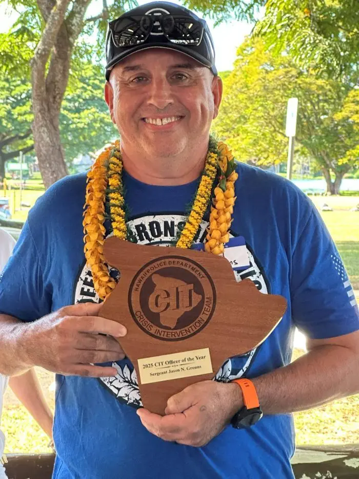 Hawaii County Police Detective Jason Grouns was honored by the Big Island chapter of the National Alliance on Mental Illness (NAMI) with the inaugural Crisis Intervention Team Officer of the Year Award.